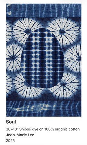 I chose Shibori dyeing for its layered ancestral tradition and its ability to hold both symmetry and spontaneity. The indigo dye and water-based process resonated with my upbringing on the Gulf of Mexico in Mobile, Alabama. Osaka, Japan—sister city to my hometown—was devastated by the 2011 tsunami, and the following year, a Christmas Day tornado struck my own neighborhood. These disasters, both distant and intimate, became part of the shattered pieces of my soul.